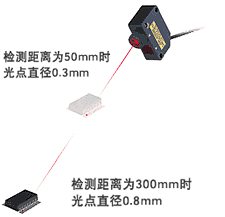 光点直径 : 最大值0.8mm 0.03" (检测距离 : 最大300mm11.81″ max) |