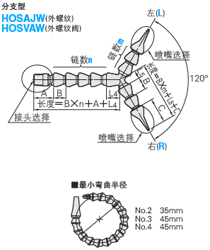 ※软管公称型号为3时,接头形状不能选择VAF型